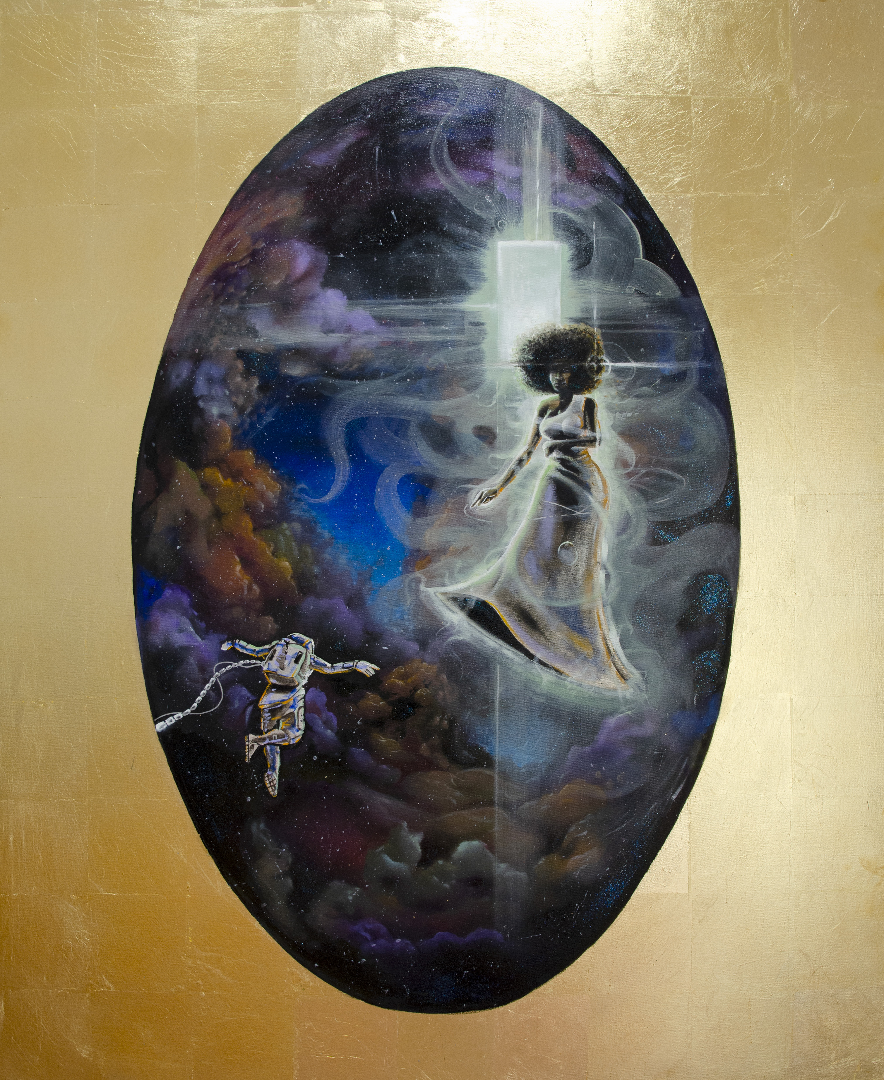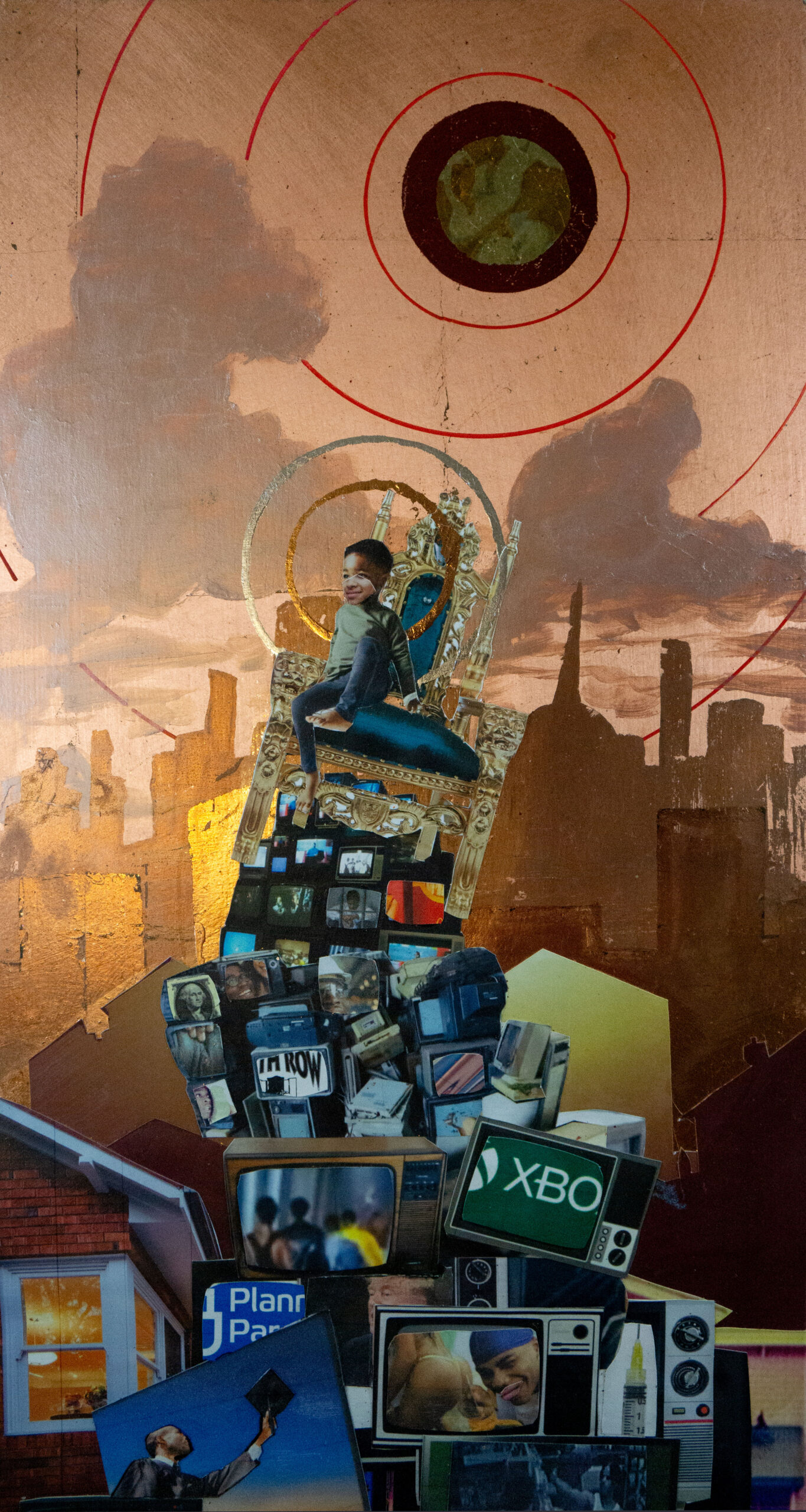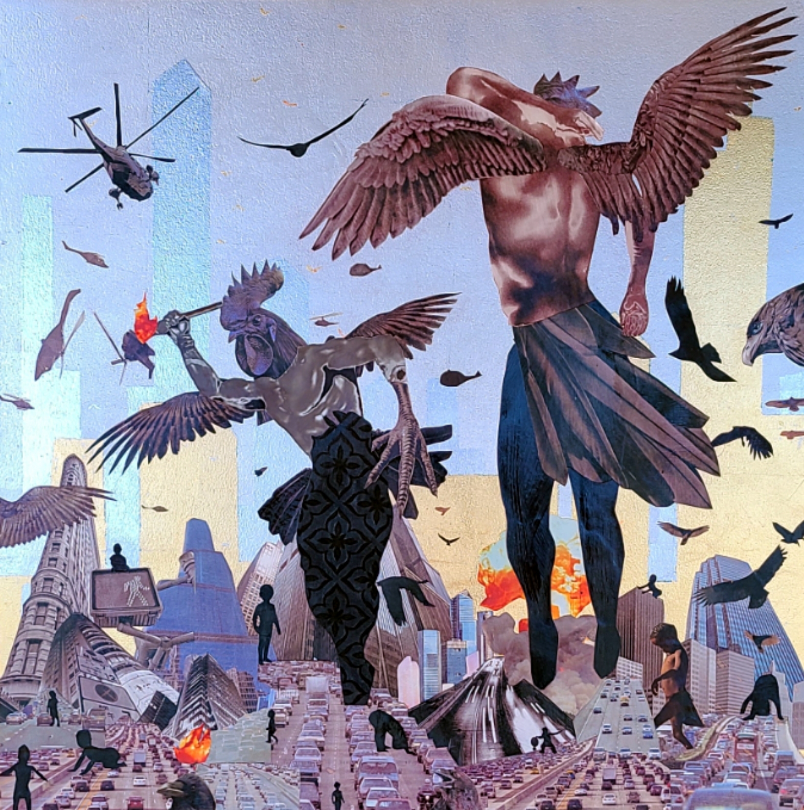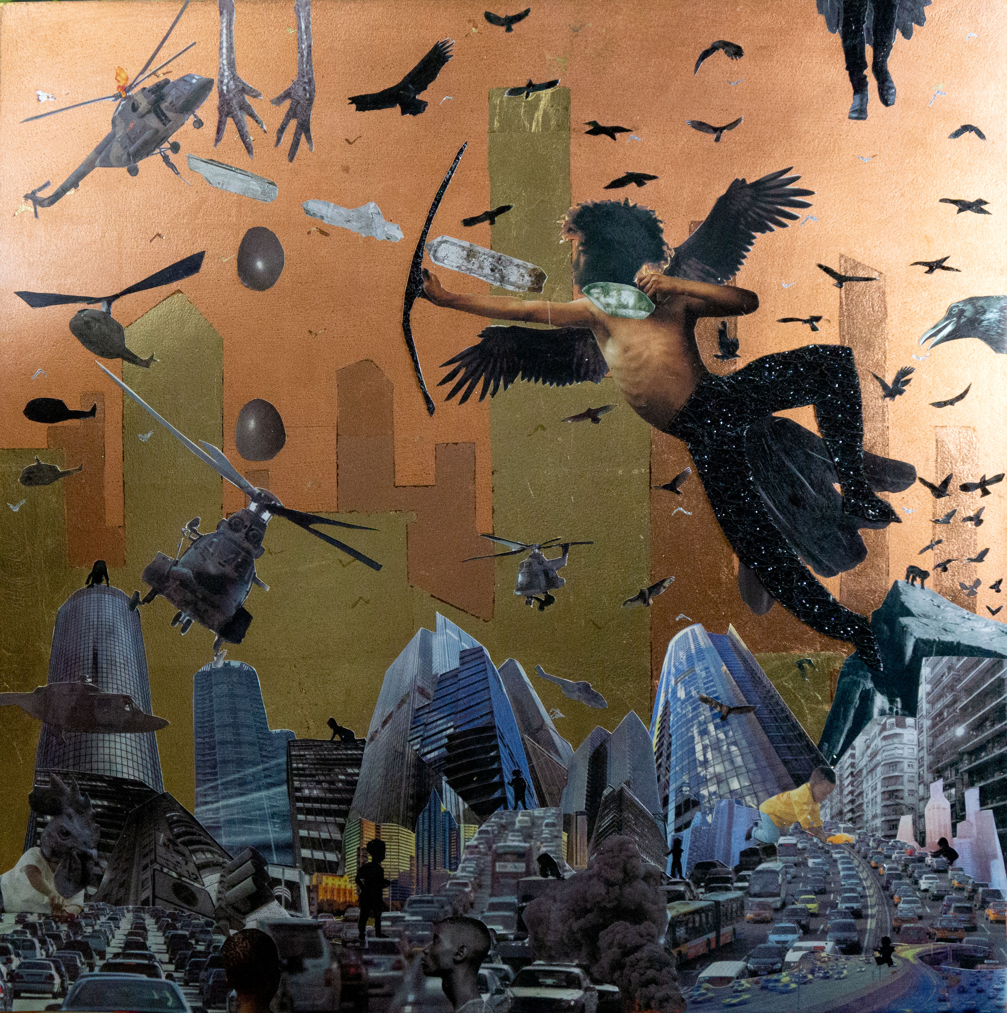 Mixed Media Collage with gold and silver leaf